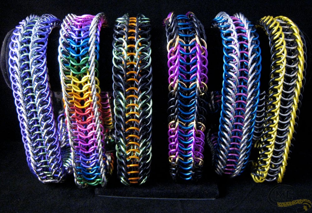 Customized collar in the Ridge-back weave just under an inch wide, uses a standard plastic collar clip. A ring can be added to the front, for tags or other charms.